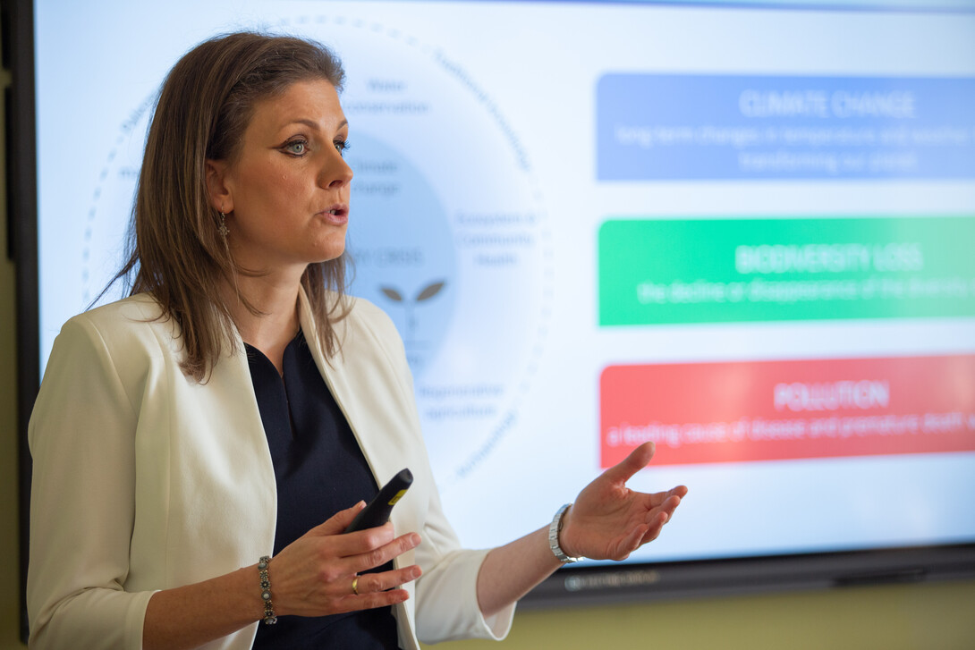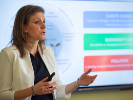 Raisz Anikó, az Energiaügyi Minisztérium környezetügyért felelős államtitkára tartott ma előadást a Pannon Egyetem Körforgásos Gazdaság Egyetemi Központban. A prezentáción az intézmény nemzetközi szakjain tanuló hallgatók vettek részt.