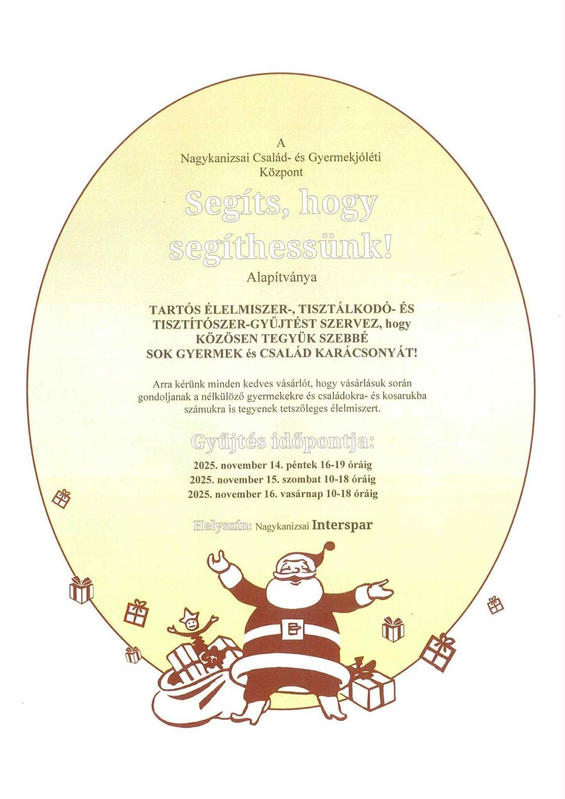 A Nagykanizsai Család- és Gyermekjóléti Központ Segíts, hogy segíthessünk! Alapítványa gyűjtést szervez