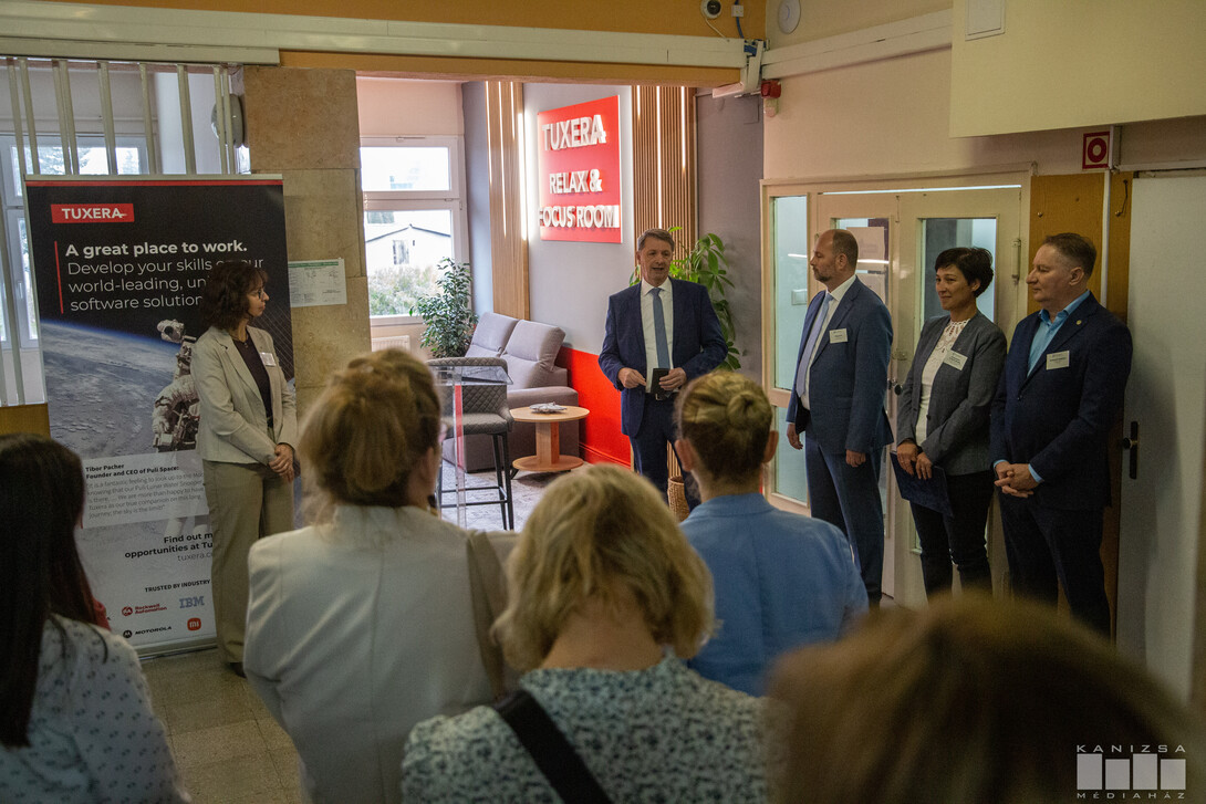 - Ennek az együttműködésnek rengeteg olyan lába van, amely a képzésre vonatkozik, együttműködésre, gyakorlatra, reményeink szerint későbbi RMB projektekre, de ennek az együttműködésnek a keretében a Tuxera megtámogatta a kanizsai egyetemi központot egyrészt azzal, hogy egy pihenő sarkot alakított ki az itteni hallgatóknak, ami egyszerre ad lehetőséget az elmélyülésre, illetve ahogy a köszöntőben elhangzott, az innovációk közösségben születnek, így ez egy nagyon jó hely lehet arra, hogy okos és ügyes emberek közösen ötleteljenek új problémák megoldásán - mondta el Csillag Zsolt.