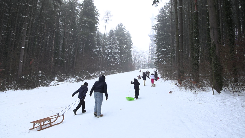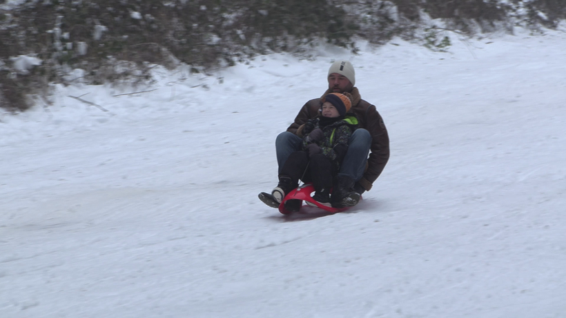 Sokan használták ki a hótakarót a hétvégén a Csónakázó-tónál. A kilátó alatti dombon gyerekek és felnőttek együtt élvezték a csúszkálást, legtöbben szánkóval, azonban volt, aki traktorgumi belsővel.