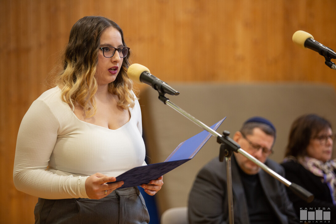 - Emiatt fontos nekünk másodgenerációsoknak átvenni ezt a szerepet, nekünk beszélni, nekünk közvetíteni, nekünk magyarázni, ha szükséges és ha kell, akkor a gyerekek kezét megfogni, vagy lemenni az ő szintjükre, vagy felemelkedni hozzájuk, hogy értsék és megértsék, hogy minden a szavakkal kezdődött és, hogy mi az ő felelősségük, mi a mi felelősségünk - fogalmazott Lévai Ibolya, a Nagykanizsai Zsidó Hitközség alelnöke.