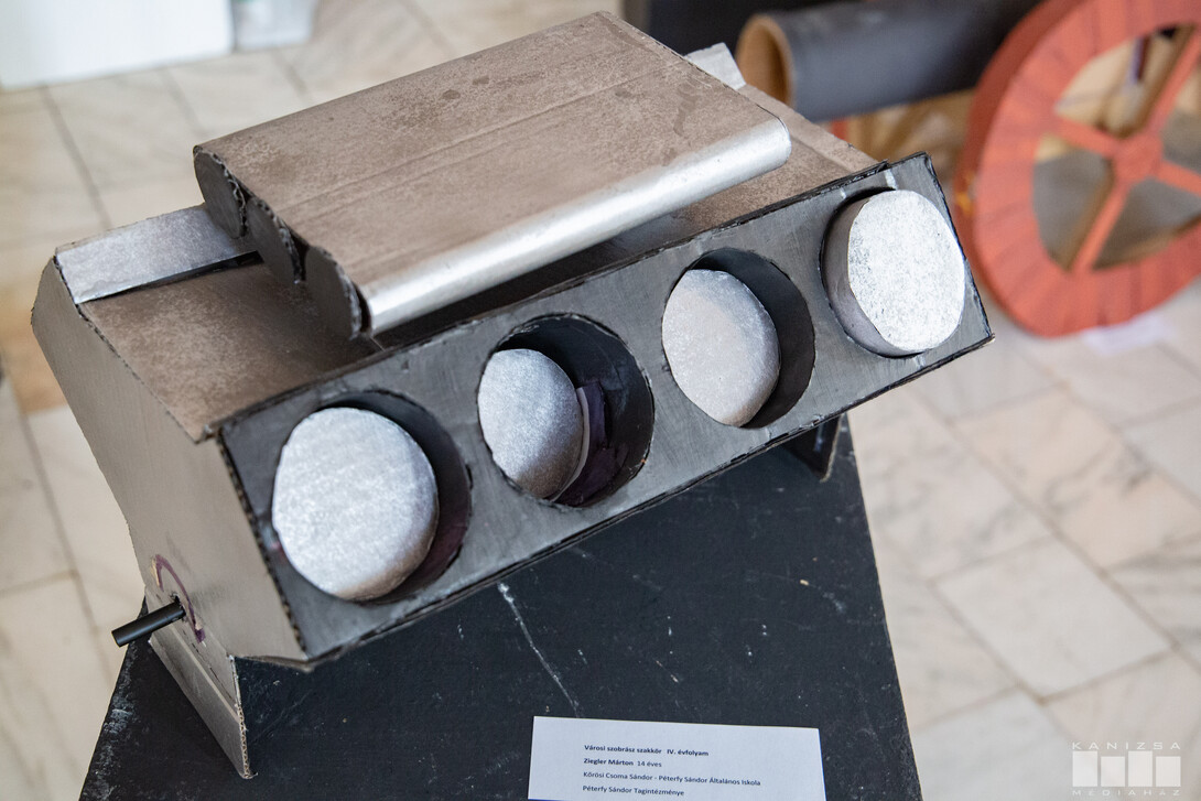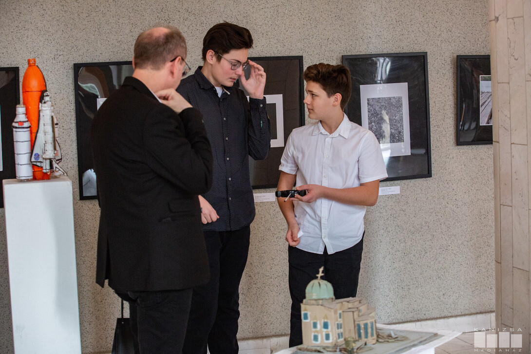 Az „Anyag, szerkezet, forma, lépték” című tárlaton a Péterfy-iskola két nyolcadik osztályos diákjának alkotásait mutatták be a HSMK színházi előcsarnokában. A Kanizsai Kulturális Központ és a Városi szobrász szakkör közös rendezvényén ünnepélyes műsorral – beszédekkel, verssel és kürtjátékkal – köszöntötték a résztvevőket. A kiállítást Babati Csaba művésztanár nyitotta meg, bevezetve a közönséget a két fiatal alkotói világába és eddigi munkásságába.