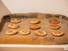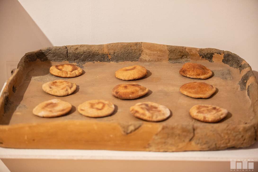 - És az, hogy kerek, mint a fánk, nyilván a legegyszerűbb sütési forma. Ha egy tésztát elnyújtunk, az mindig kör alakból indulhat. Igyekeztünk egy bronzkori tepsit – nyilván egy korabelihez hasonló lepény kenyérkékkel megtölteni, hogy mégis egy kicsit kerek világot tárjunk a látogatók elé - fogalmazott Szmodics-Tugya Beáta, a Thúry György Múzeum történész-muzeológusa.