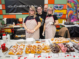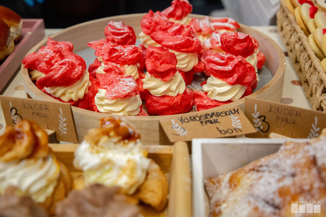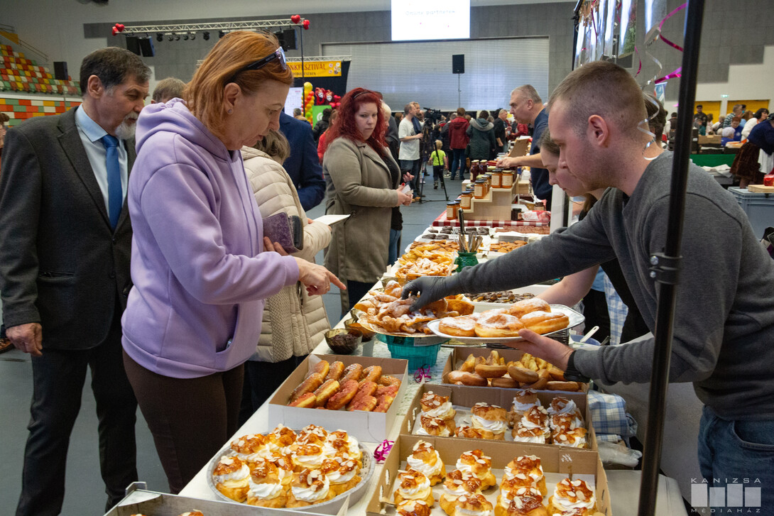 A hagyományőrző csapatok mellett profik is részt vettek a fesztiválon. Az egyik kanizsai cukrászda szintén nem első alkalommal állított fel standot. A hagyományos szalagos fánk mellett három féle ízben kínáltak ekler fánkot, és a sokak kedvence is megjelent az asztalon, az apáca fingocska.