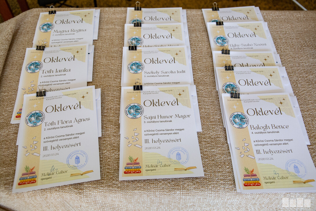 Az életünk minden szegmensében a beszédet, a leírt szöveget fontos, hogy jól értelmezzük. A mai világban, amikor a számítógép a gyerekek legfontosabb eszköze, különösen fontos a szövegértés – ez volt a jelmondata a Kőrösi-iskola szövegértési versenyének, melyet már több évtizede rendeznek meg. A díjátadó ünnepséget kedden tartották.