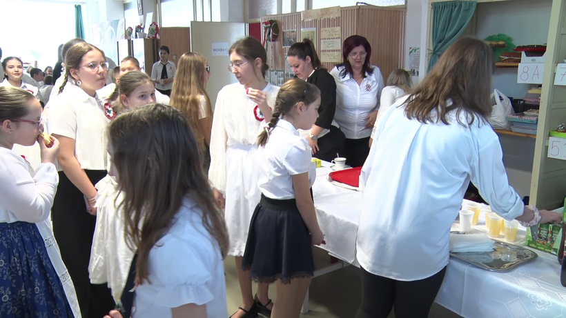 - Már a tavalyi hagyományt követően a Pilvax Kávéházat az ebédlő előtti aulában rendeztük be. Gyakorlatilag most idén egy múzeum-kávéházunk lett, ugyanis a Határtalan program keretében a gyerekeink Erdélybe is mennek, tehát kiállítottuk például a korábbi győztes pályamunkákat. Aztán vittünk ki olvasnivalót természetesen, amelyek a 48–49-es forradalom és szabadságharchoz kapcsolódnak. Van kint társasjáték is, amit lelkes önkéntes szülőknek köszönhetünk, gazdag a kínálat a süteményben, nem kell külön bemutatni a kiskanizsai süteményeket – mondta el Hosszú Ágnes, a Kiskanizsai Általános Iskola pedagógusa.
