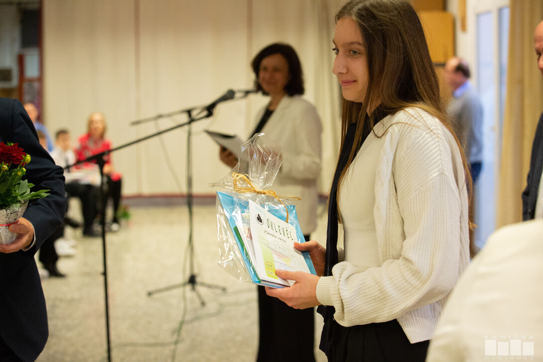 - Az egész vármegye területére hirdettük meg a tanulmányi versenyünket. Tizenhét iskola nevezett be a különböző tantárgyak versenyére, több mint háromszáz tanuló jelentkezett, úgyhogy egy viszonylag nagyszámú, nagy népességgel rendelkező versenyt tudhatunk magunk mögött. A mai nap, ugye, a legjobbakat hívtuk ide a díjátadóra - árulta el Sneffné Ágoston Mónika.
