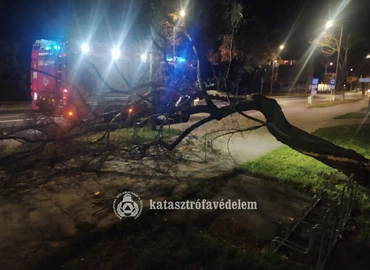 Kerékpárútra dőlt egy fa Nagykanizsán, a Hevesi Sándor utcában. A város hivatásos tűzoltói motoros láncfűrésszel távolították el a fát. katasztrofavedelem.hu