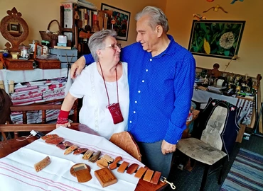 Stiller Gábor, Király Zsiga-díjas fafaragó népi iparművész, a Zala Megyei Népművészeti Egyesület alapító tagja, a Honvéd Kaszinó Fafaragó Stúdiójának vezetője, és felesége, Stiller Gáborné, Pannika,…